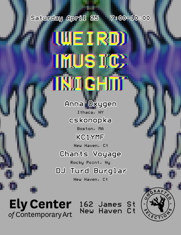 The Ely Center of Contemporary Art presents an evening of experimental sound and performance curated by Andrei Jay. This program brings together artists working across electronic music, projection, performance, and expanded media practices.